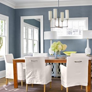A coffered ceiling is a classic design that features structural boxes, or “coffers,” in a grid pattern across the ceiling. This design adds a touch of elegance and sophistication to a room and can be customized with different molding and paint colors.